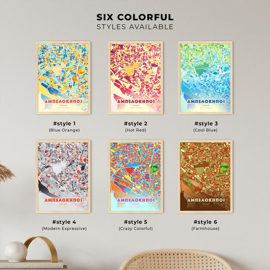 Colorful AMPELOKIPOI GREECE Fine Art Map Poster | Customizable