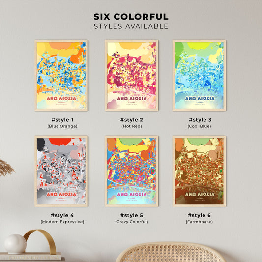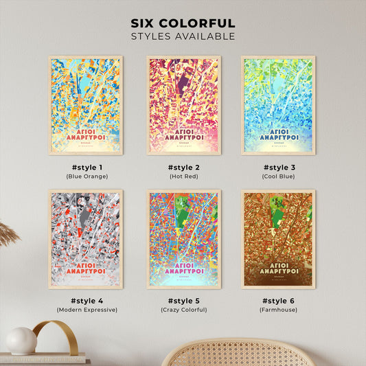 Colorful AGIOI ANARGYROI GREECE Fine Art Map Poster | Customizable