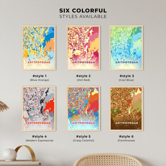 Colorful ARGYROUPOLI GREECE Fine Art Map Poster | Customizable