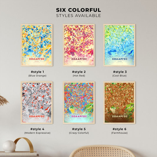 Colorful CHOLARGOS GREECE Fine Art Map Poster | Customizable