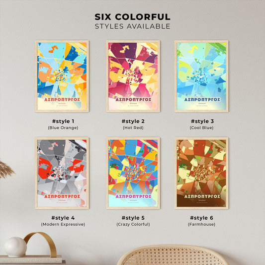 Colorful ASPROPYRGOS GREECE Fine Art Map Poster | Customizable