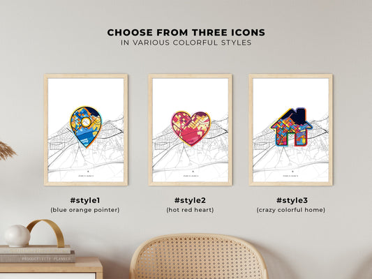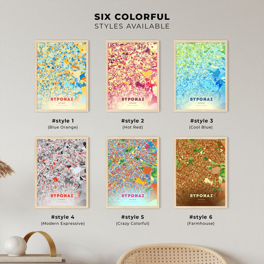 Colorful VYRONAS GREECE Fine Art Map Poster | Customizable