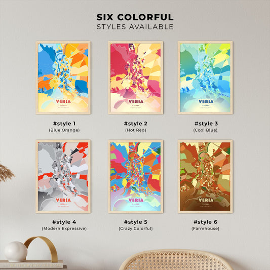 Colorful VERIA GREECE Fine Art Map Poster | Customizable