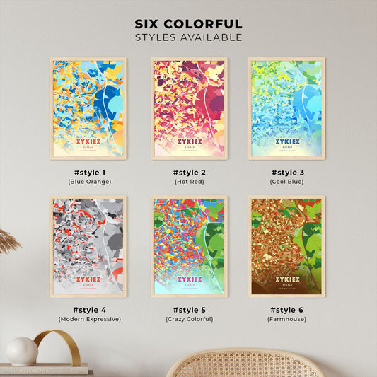 Colorful SYKIES GREECE Fine Art Map Poster | Customizable