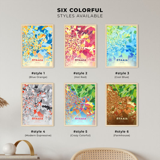 Colorful PYLAIA GREECE Fine Art Map Poster | Customizable