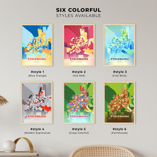 Colorful PTOLEMAIDA GREECE Fine Art Map Poster | Customizable