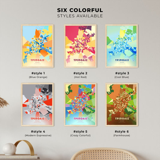 Colorful TRIPOLI GREECE Fine Art Map Poster | Customizable