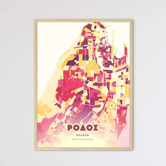 Colorful Rhodes Greece Fine Art Map Poster | Customizable
