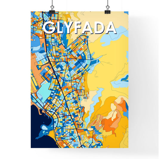 Glyfada Greece Vibrant Colorful Art Map Poster