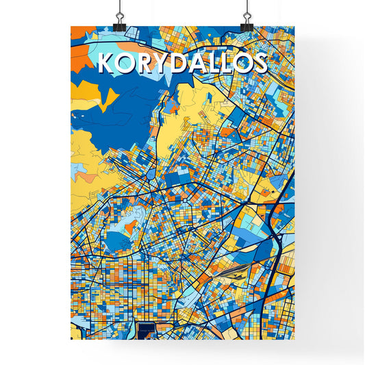 Korydallos Greece Vibrant Colorful Art Map Poster