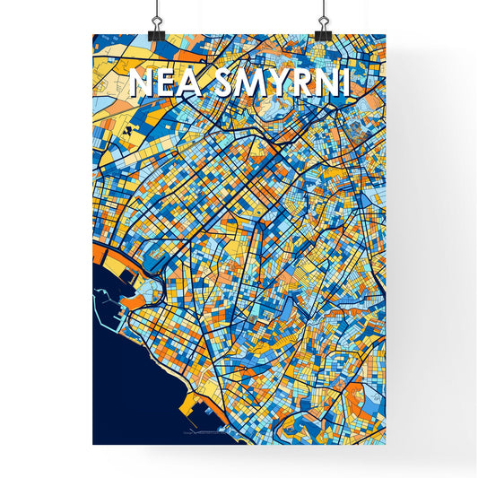 Nea Smyrni Greece Vibrant Colorful Art Map Poster