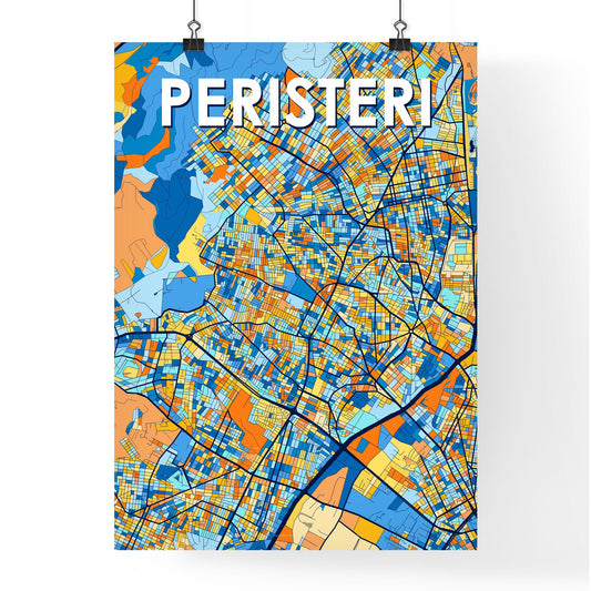 Peristeri Greece Vibrant Colorful Art Map Poster