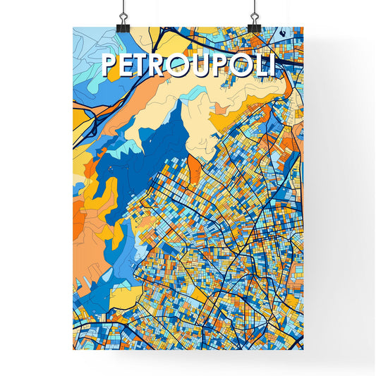 Petroupoli Greece Vibrant Colorful Art Map Poster