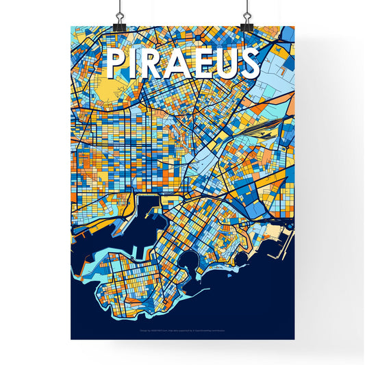Piraeus Greece Vibrant Colorful Art Map Poster