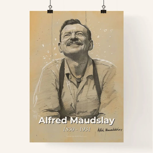 Alfred Maudslay: Celebrated British Archaeologist - Elegant Contemporary Drawing on Beige, Perfect for Home Decor or Gifts