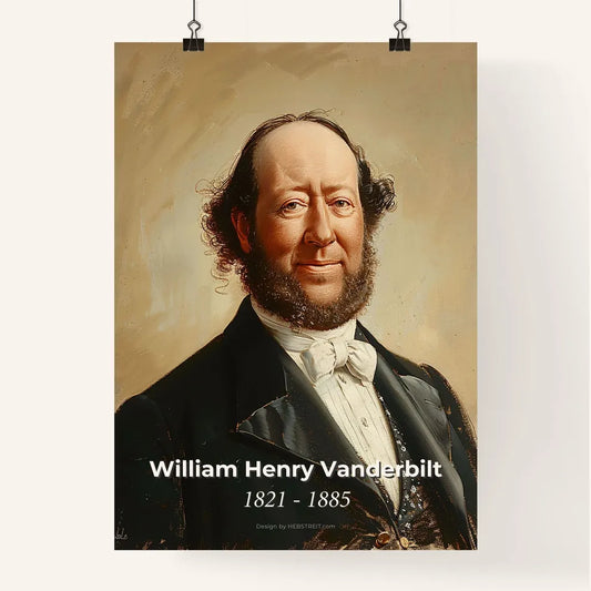 William Henry Vanderbilt: Captivating Contemporary Portrait on Beige, Dynamic Lines & Hatching - Perfect for Luxurious Home Decor