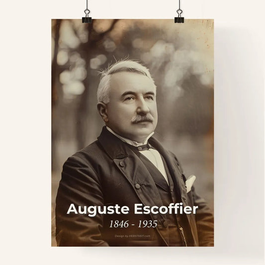 Elegant Tribute to Auguste Escoffier: Iconic Chef Portrait in Monochrome with Rustic Charm - Perfect for Home Decor or Gifting