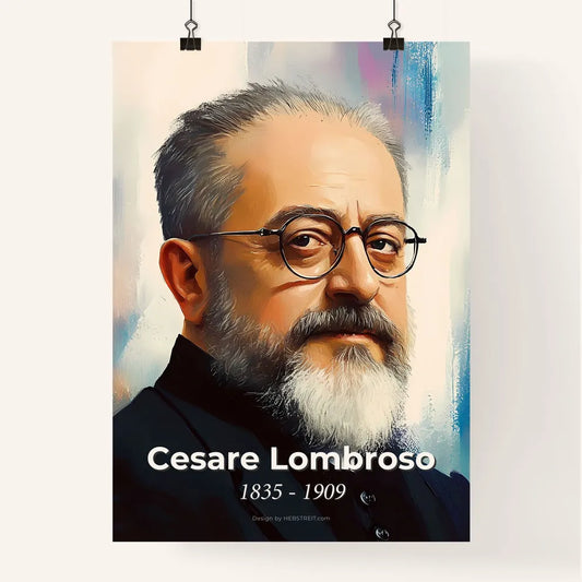 Portrait of Cesare Lombroso, 1835 - 1909. Impressionistic painting of a man with glasses and a beard.
