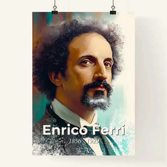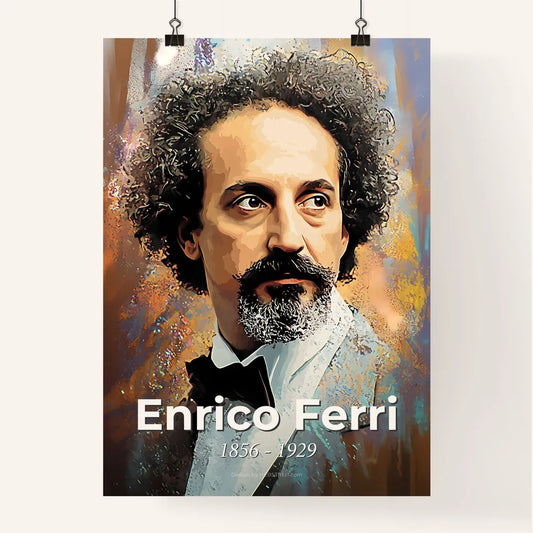 Portrait of Enrico Ferri, 1856 - 1929. Impressionistic painting of a man with curly hair and a bow tie.
