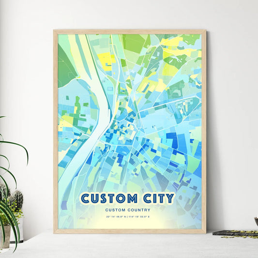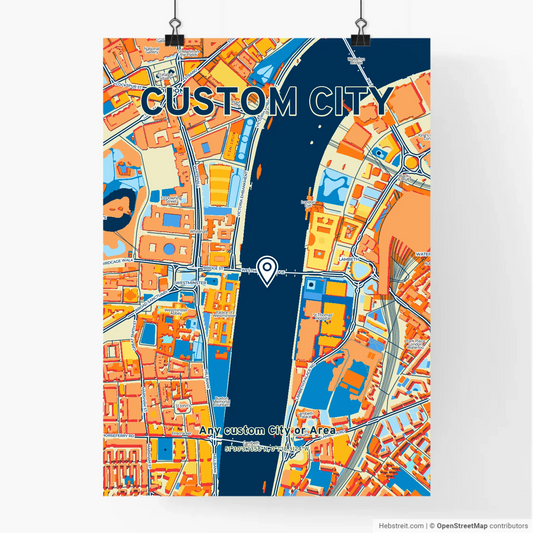 Custom VIBRANT BLUE ORANGE City Map – Add Your Own Place or Coordinates