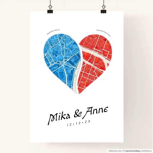 Design your own personalized map print with our Custom Maps. Choose any location worldwide and customize the style, colors, and text to match your taste. Whether it’s a minimalist black-and-white city map, a vibrant urban art print, or a romantic dual-city heart design, you can create a one-of-a-kind piece that reflects your special places and memories. Perfect for home decor, gifts, or personal keepsakes.