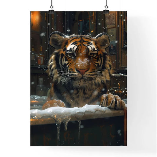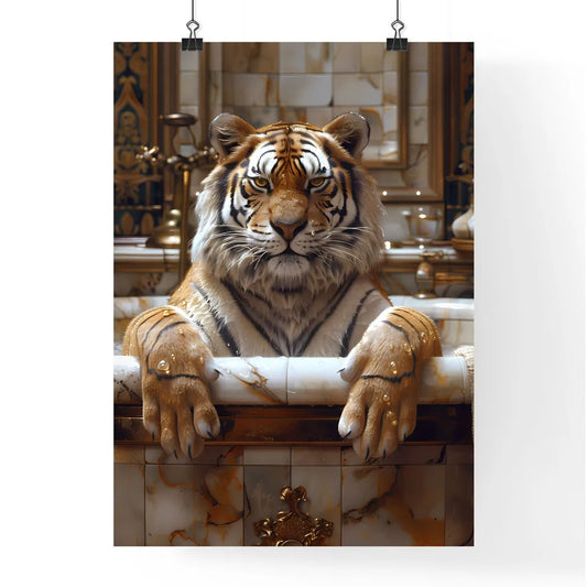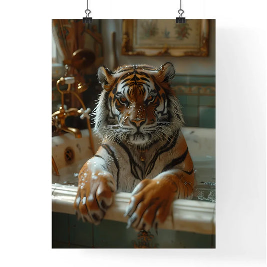 Surreal Whimsical Tiger in Bathtub Painting, Transgressive Art for, Ambient Occlusion