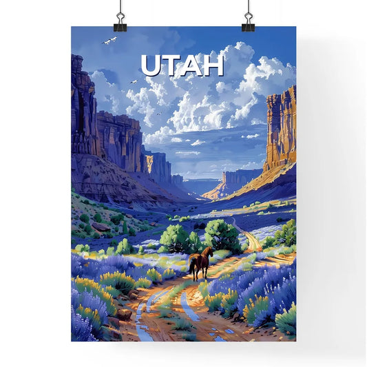 Vibrant Artistic Painting of a Horse on a Dirt Road in Utah Valley with Towering Cliffs