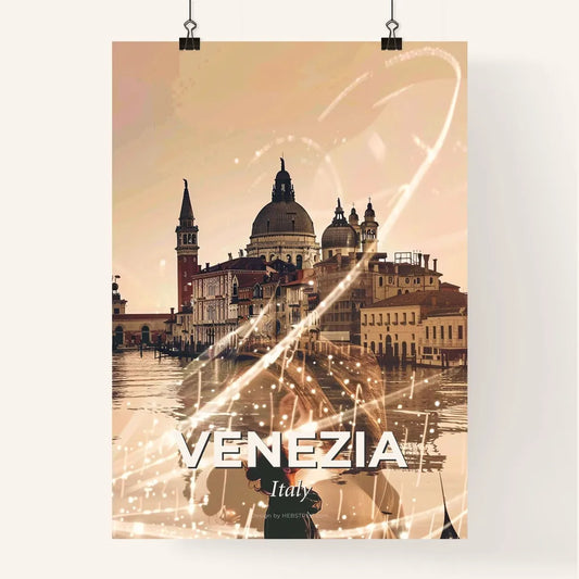 Venice Skyline Double Exposure Art Print - A person in a body of water with a building in the background