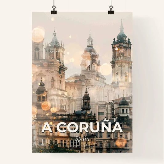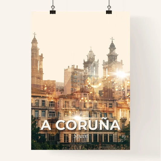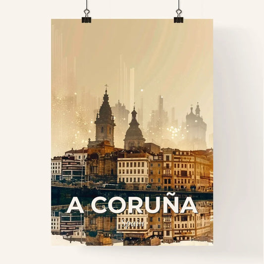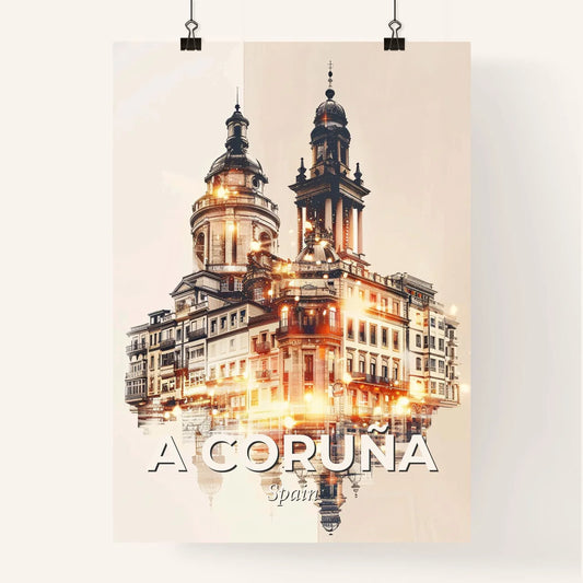 A Coruña Skyline Art Deco Poster Design - A group of buildings with towers