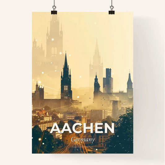 Aachen City Skyline Art Deco Poster - A cityscape with trees and buildings