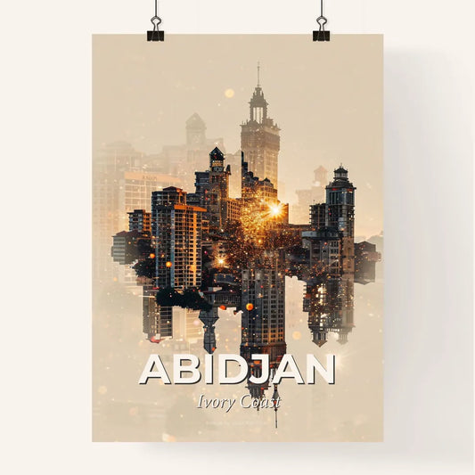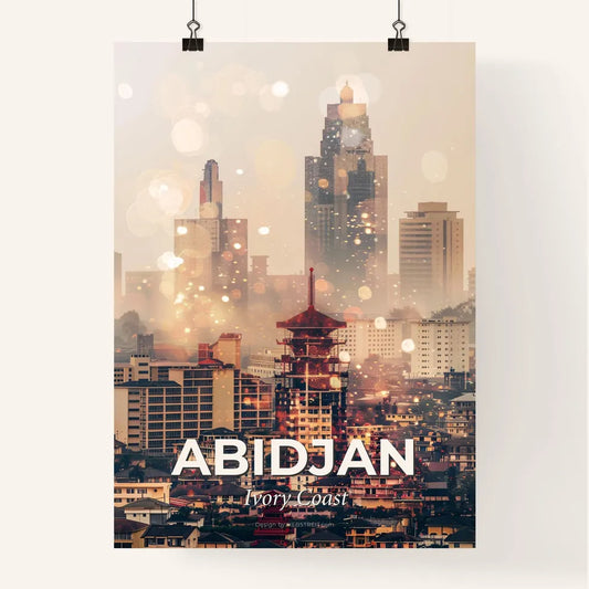 Abidjan Architecture Skyline Beige Poster Art - A city with many tall buildings