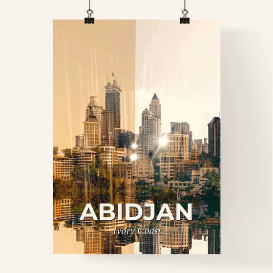 Abidjan Skyline Double Exposure Art Poster - A city with trees and buildings reflected in water