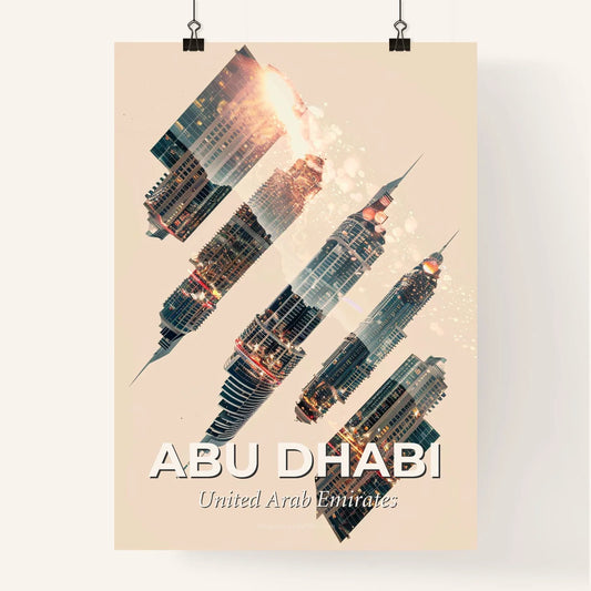 Abu Dhabi City Skyline Double Exposure Poster - Multiple buildings in the sky