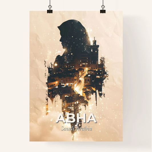 Abha City Composite Art: Skyline Beauty in Beige - A silhouette of a person in a city