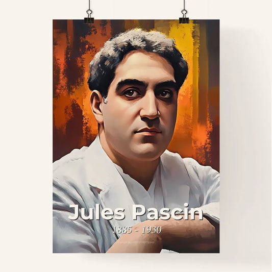 Portrait of Jules Pascin, 1885 - 1930. Impressionistic painting of a man in a white coat.
