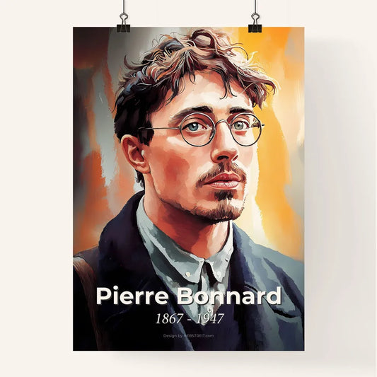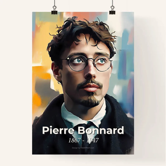 Portrait of Pierre Bonnard, 1867 - 1947. Impressionistic painting of a man wearing glasses and a suit.