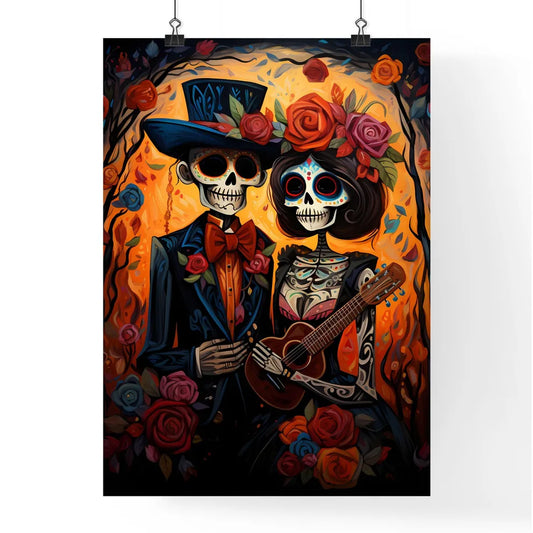 Day Of The Dead - A Couple Of Skeletons With Flowers And A Guitar