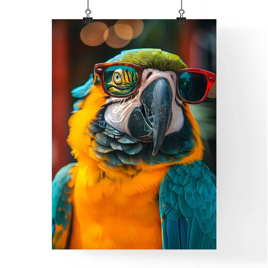 Vibrant Artistic Painting of a Parrot Wearing Sunglasses on Black Background