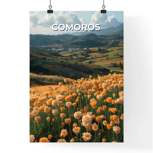 Beautiful Painting of Colorful Flowers and Mountains in Comoros, Africa