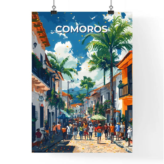 Colorful African Street Scene Painting - Comoros Art Africa Vibrant Painting