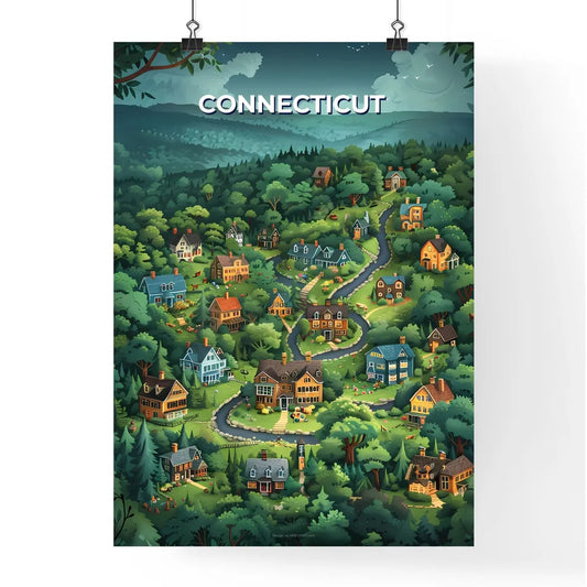 Cartoon Village Painting Connecticut USA Woods Artwork Vibrant Art