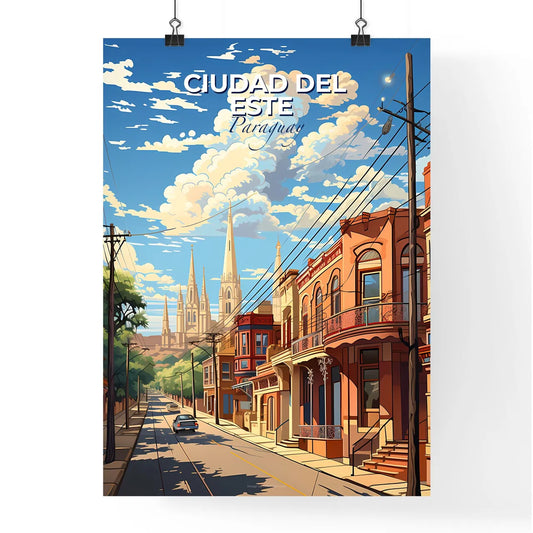 Painting of Colourful Street with Buildings and Church Architectural Detail in Ciudad del Este Paraguay