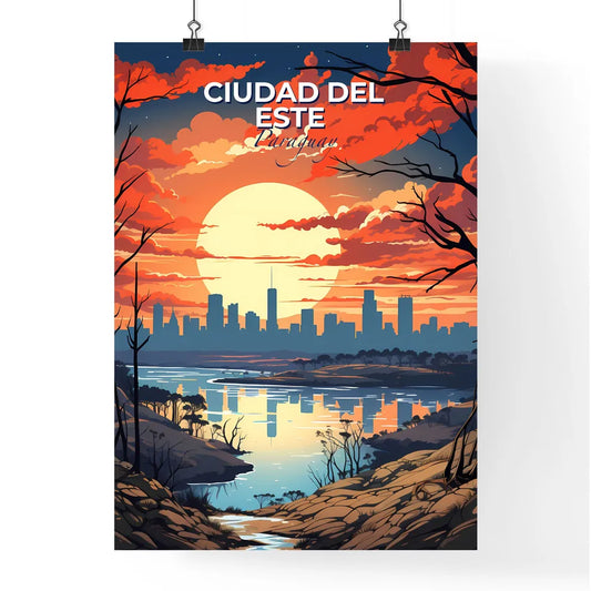 Vibrant Sunset Over River with City Skyline, Capturing the Artistic Essence of Ciudad del Este, Paraguay