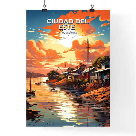 Painted Skyline of Ciudad del Este Paraguay with River, Houses, and Boats