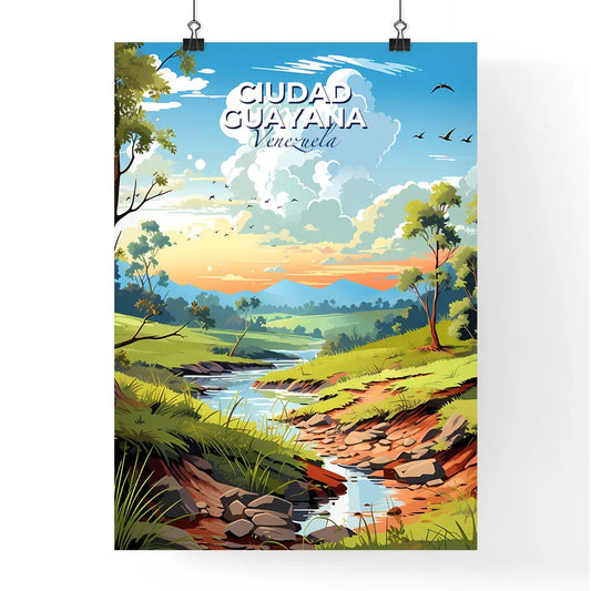 Vibrant River Valley City Skyline Painting, Ciudad Guayana, Venezuela