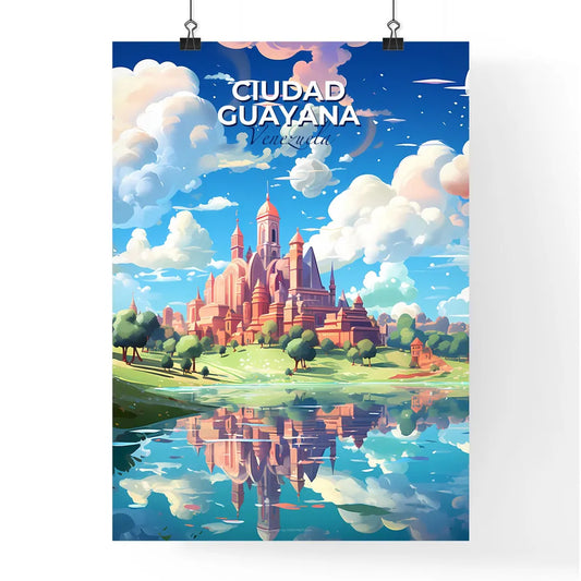 Vibrant Artsy Castle Skyline Painting with Towers, Trees, and Lake in Ciudad Guayana Venezuela
