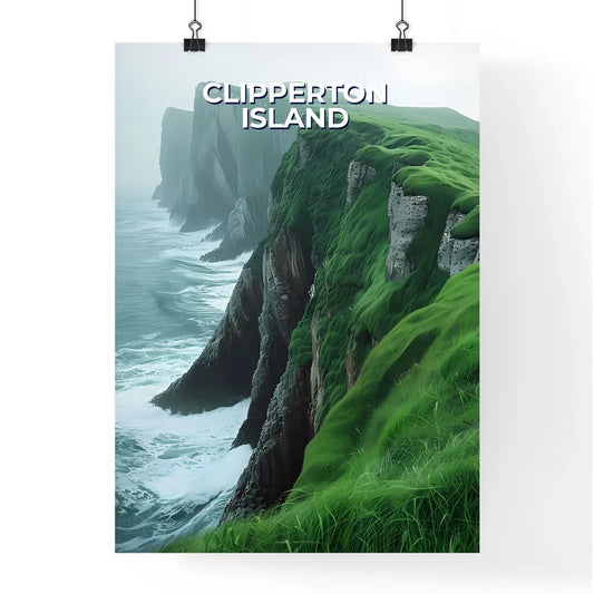 Colorful Artistic Depiction of Clipperton Island's Grassy Cliff Overlooking Ocean, North America