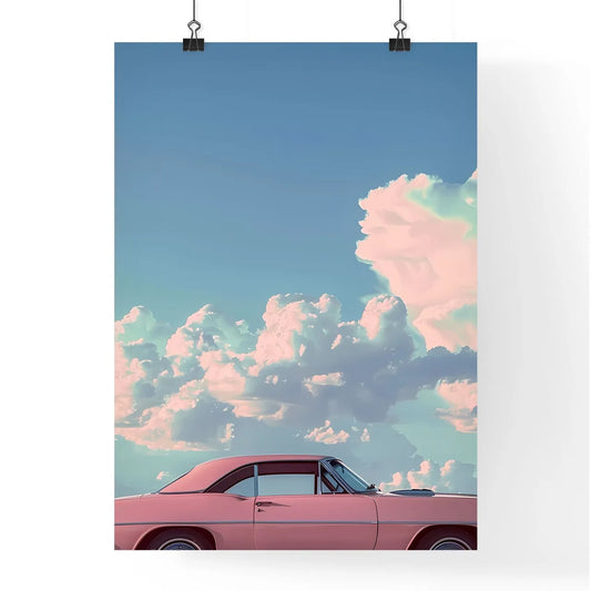 Vibrant Digital Painting: Pink Vintage Car in Blue Sky Cloudscape, 4K Resolution