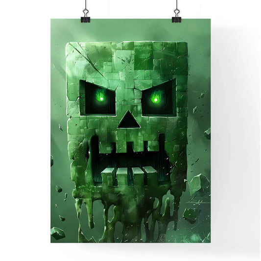 Minecraft Style Stone Face Cartoon T-Shirt Design in New York School Gadgetpunk Text-Based Future Tech Chromatic Animated Gifs Creepypasta Green Background