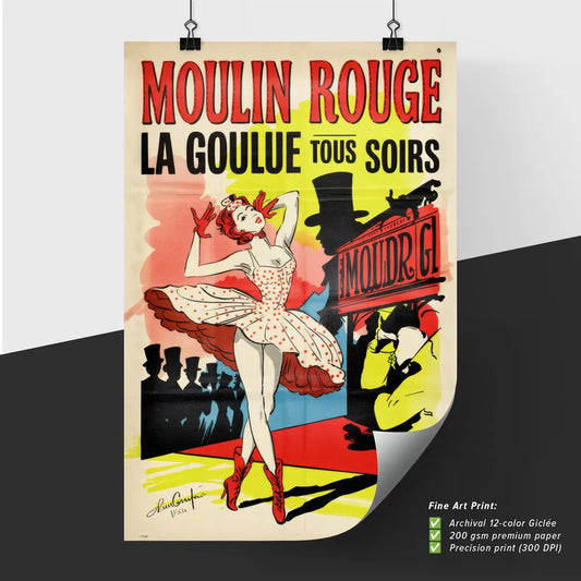 Moulin Rouge - Colorful cabaret poster of a dancer. – Fine Art Poster Inspired by Vintage Advertisements